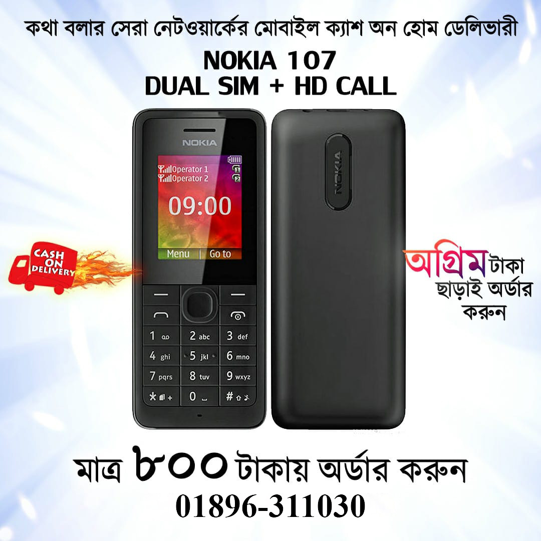 নোকিয়া ১০৭ দুই সিমের মোবাইল এবং এতে মেমোরী কার্ড ব্যবহার করা যায়। দেখতে সাধারন এবং অফিশিয়াল লুকস যে কাউকে মুগ্ধ করবে, স্মার্ট ও সিম্পল ডিজাইন এই মোবাইল এর।