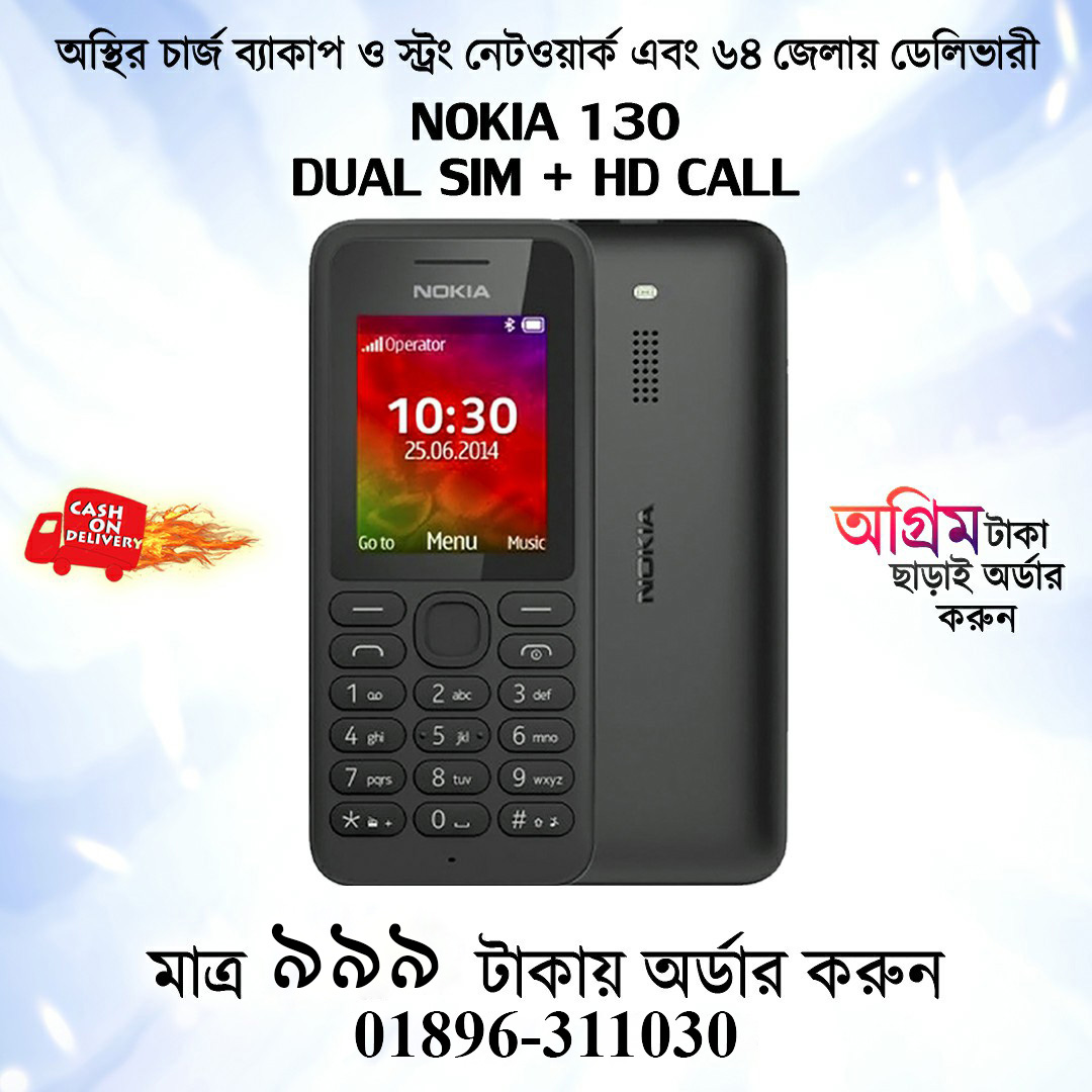 - Nokia 130 ২ সিম ও মেমোরী কার্ড সাপোর্টেড upto 2gb.